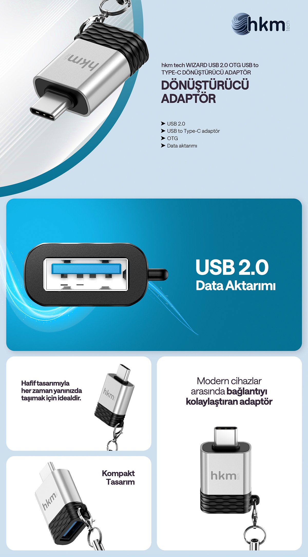 hkm Wizard USB 2.0 OTG USB to Type-C Adaptör, cihazlarınızı birbirine kolayca bağlamanızı ve veri aktarımı yapmanızı sağlayan kompakt ve pratik bir çözüm sunar. Gelişmiş özellikleriyle hem günlük kullanım hem de iş hayatında şarj ve veri transferi ihtiyaçlarınıza yanıt verir.